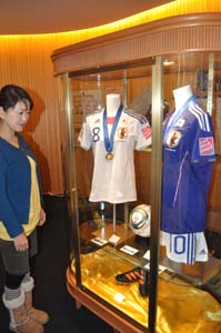 昨年、サッカー女子ワールドカップドイツ大会で優勝した「なでしこJAPAN」の選手が実際に着たユニホームなどを展示する「スポーツフェスタ2012」(和島興産㈱など主催)が10日、和歌山市本町の複合商業施設フォルテワジマで始まった。15日まで。