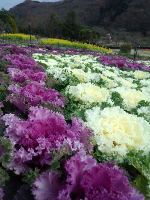 岩出市の県植物公園緑花センターで 葉ボタンがきれいに植えられています! これだけあると圧巻ですね。 (憲)
