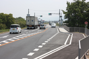 右折帯完成でスイスイ 県道14号の千旦交差点