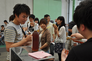 会場には同社の製品約30種がずらり。試飲のブース前には列ができ、厳選した梅を漬け込んだ本格派の「紀州梅酒 紅南高」、柑橘類の果汁を加えた各種「カクテル梅酒」、梅酒が入った「初恋ビール」 が人気となっていた。