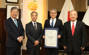 式典には同社の小嶋光信社長と「ろくたま」、伊太祈曽駅マネージャー駅長の「よんたま」、貴志川線ふく駅長の「ごたま」、貴志川線の未来をつくる会の木村幹生代表らが出席。