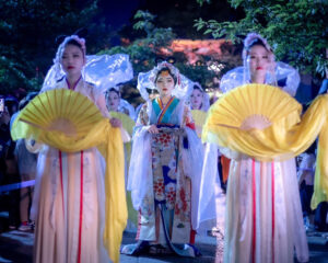 炎を囲み、一心に祈る修験者