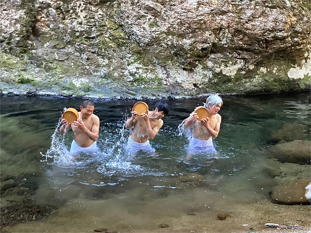 日差しは穏やかでも、冷たい冬の川。木桶で水をかける瞬間は見ているだけでも寒そうな光景でしたが、水垢離を終えた鳥羽山さんの表情は思いのほか晴れやか。「いろんなものが削ぎ落とされて体が軽くなった気がします」と話します。