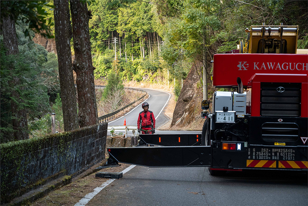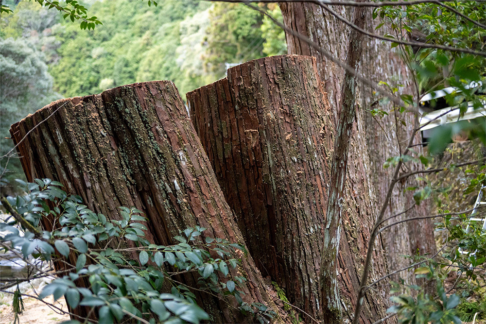 一般的な樹木伐採と違い、地域の歴史や信仰にも深く関わるこの特別な作業にあたり、白羽の矢が立ったのが鳥羽山さんでした。過去に寺社仏閣での施業経験があるだけでなく、同じ色川地域の住人でもある鳥羽山さん。「すごく難しいし、特別な仕事。怖いという思いはありましたが、自分にお声がかかるのも光栄でしたし、僕がやると言わなければよそから人が来ることになる。それなら自分が伐らせてもらいたいと思ったんです」と決意を話してくれました。