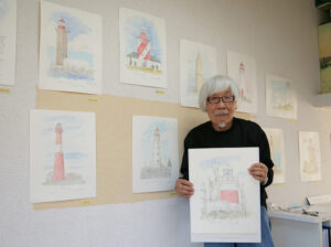 灯台のある爽快な景色 中尾さんが淡彩画展