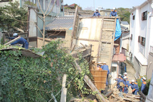 緊急措置で壁を撤去 新和歌浦の倒壊家屋